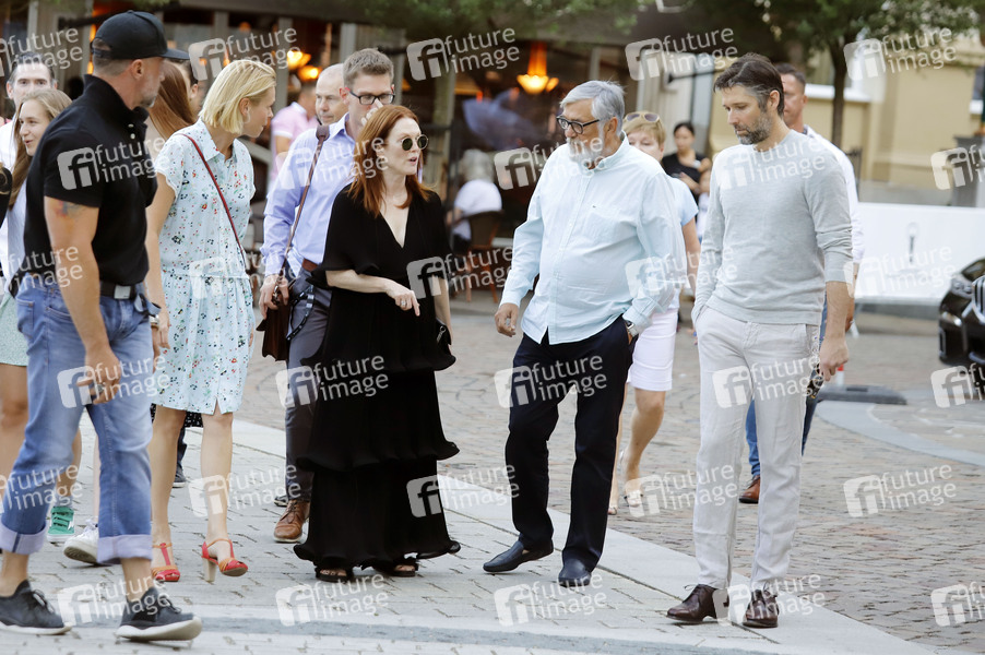 Julianne Moore mit Ehemann Bart Freundlich und Festivalleiter Jiri Bartoska bei einem Stadtbummel auf dem 54. Internationalen Filmfestival Karlovy Vary 2019. Karlsbad, 27.06.2019