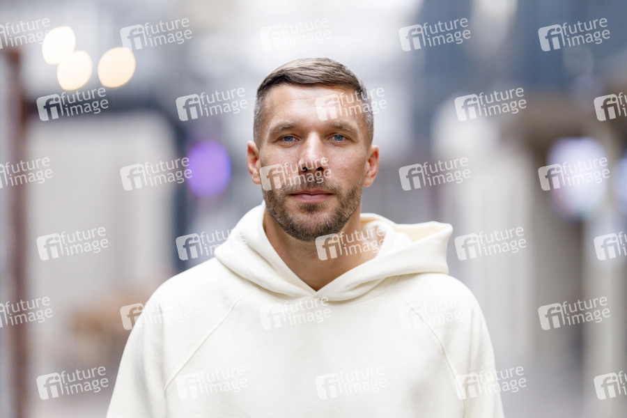 Lukas Podolski bei der Übergabe der Spende von 250.000 Euro aus der REWE Jackpot Aktion an die Lukas Podolski Stiftung in der Strassenkicker Base. Mit dem Großteil des gesammelten Geldes wird der Bau eines modernen Straßenkicker-Courts in Köln Müngersdorf unterstützt. Der darüber hinaus gehende Spendenbetrag fließt als Fördermittel in weitere soziale Projekte der Lukas Podolski Stiftung, vor allem in den Aufbau und die Unterstützung sportbasierter Bildungsprojekte für Jugendliche und Schulen in der Soccer Halle 'Strassenkicker Base' in Köln-Mühlheim (Quelle: https://fuerdenfussball.rewe.de/). Köln, 01.07.2021