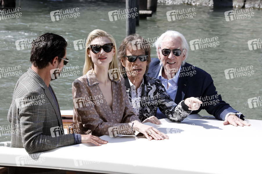 Claes Bang, Elizabeth Debicki, Mick Jagger und Donald Sutherland bei der Ankunft am Pier des Hotels Excelsior auf der Biennale di Venezia 2019 / 76. Internationale Filmfestspiele von Venedig. Venedig, 07.09.2019