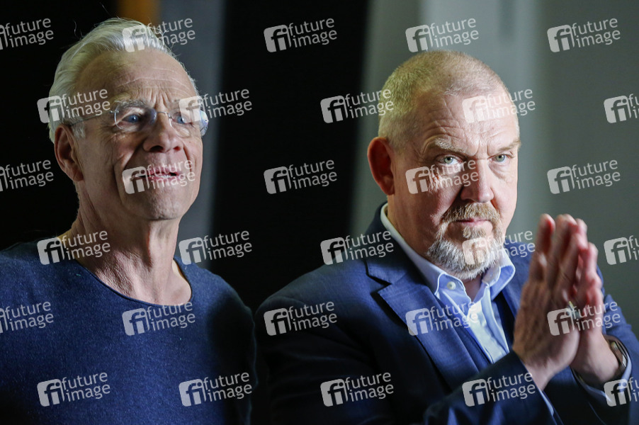 Klaus J. Behrendt und Dietmar Bär beim Fototermin bei den Dreharbeiten zum ARD-Krimi 'Tatort - Colonius' im Kommissariat-Set in der Max-Planck-Straße. Köln, 26.04.2024