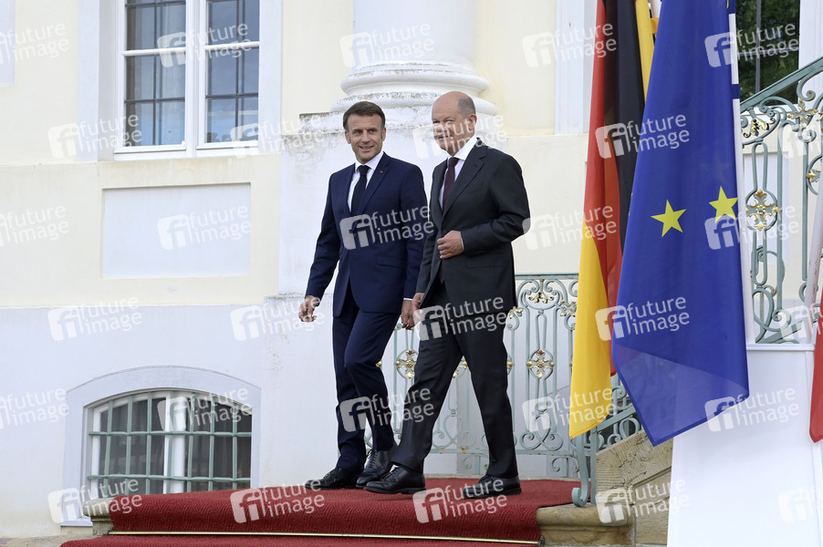 Emmanuel Macron und Olaf Scholz beim Treffen des Deutsch-Französischen Ministerrats im Gästehaus der Bundesregierung Schloss Meseberg. Meseberg, 28.05.2024
