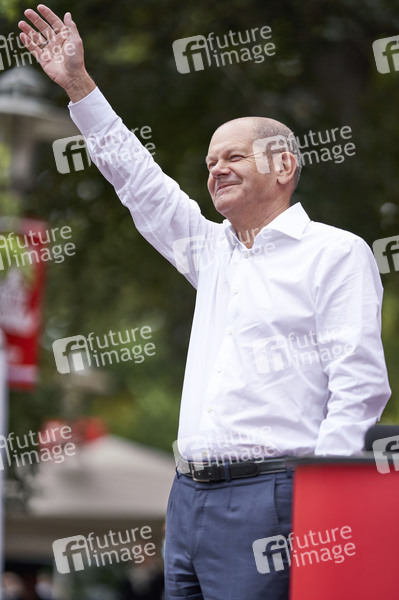 Olaf Scholz bei einer Wahlkampfveranstaltung der SPD auf der Burgdorfer Szraße. Lehrte, 21.09.2021