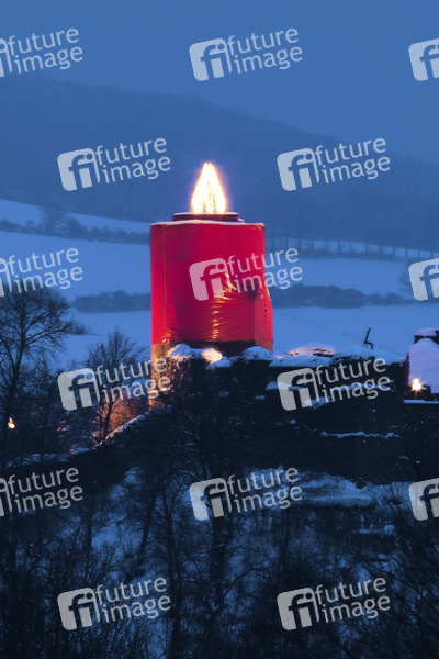 Advent, Adventszeit, Weihnachtszeit, Weihnachten, Christmas, X-Mas, Kerze, Riesenkerze, Weserbergland, Eversteiner Burg, Sehenswürdigkeit an der Weser, Ruine, Höhenburg, Luftaufnahme