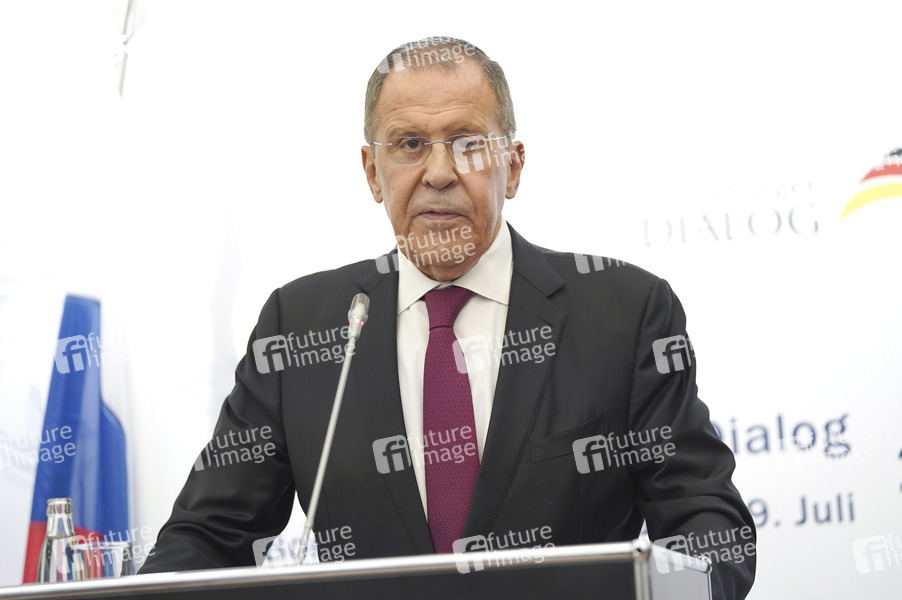 Sergei Wiktorowitsch Lawrow / Sergey Lavrov bei einer Pressekonferenz zur Eröffnung vom 18. Petersburger Dialog 2019 im Steigenberger Hotel. Königswinter, 18.07.2019