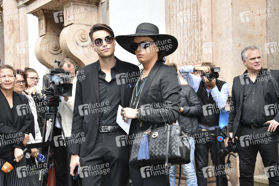 Marcel Damaschke und Julian F.M. Stoeckel bei der Trauerfeier für Hannelore Elsner in der katholischen Jesuitenkirche St. Michael. München, 31.05.2019
