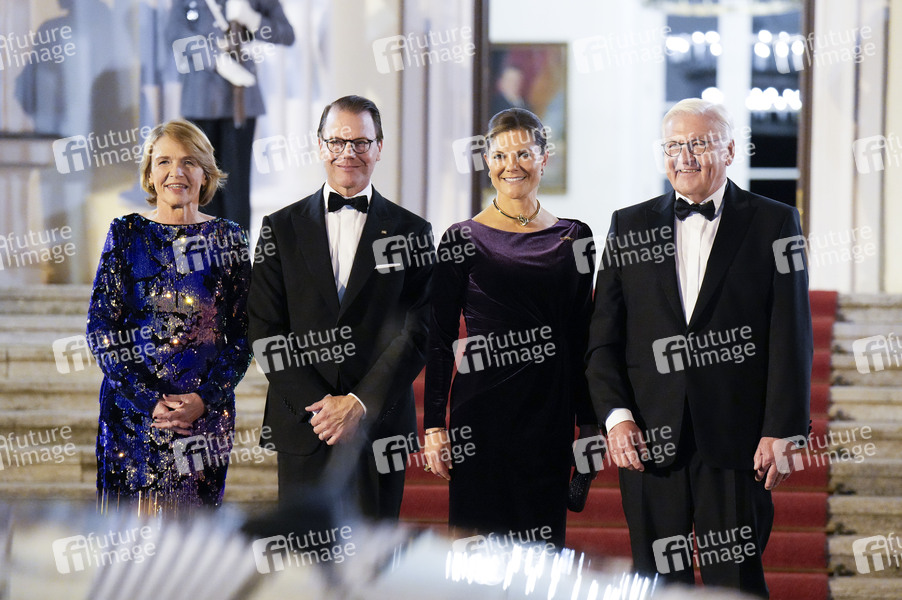 Elke Büdenbender, Prinz Daniel von Schweden, Kronprinzessin Victoria von Schweden und Frank-Walter Steinmeier bei der Ankunft zum Abendessen anlässlich des 25. Jubiläums der Nordischen Botschaften im Schloss Bellevue. Berlin, 21.10.2024
