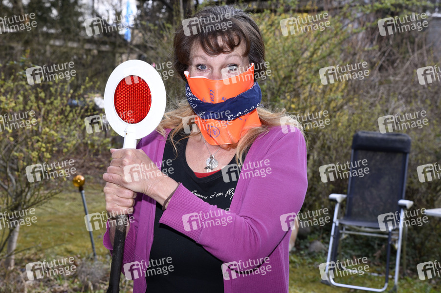 Barbara Weinzierl bei einem exklusiven Fototermin mit und ohne Gesichtsmaske in ihrer Wohnung und im Garten während der Coronakrise. München, 03.04.2020