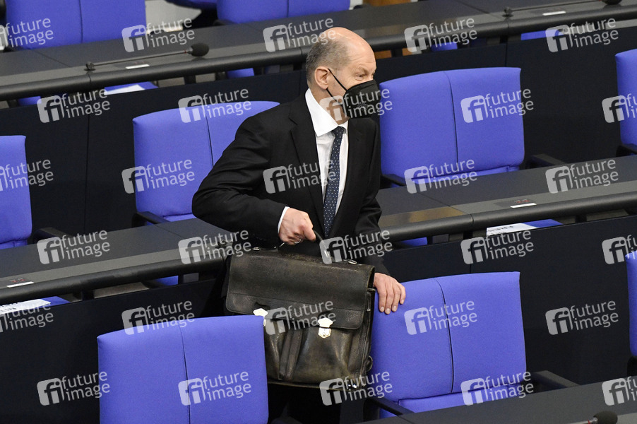 Olaf Scholz in der 225. Sitzung des Deutschen Bundestages im Reichstagsgebäude. Berlin, 23.04.2021