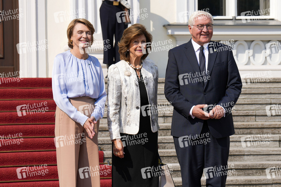 Elke Büdenbender, Königin Silvia von Schweden und Frank-Walter Steinmeier beim Empfang von Königin Silvia von Schweden und Eintrag in das Gästebuch im Schloss Bellevue. Berlin, 18.09.2024