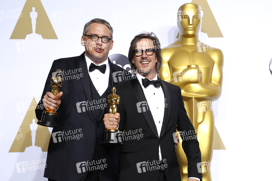 Adam McKay und Charles Randolph (Bestes adaptiertes Drehbuch 'The Big Short') im Presseraum der Oscar Verleihung 2016 / 88th Academy Awards im Loews Hollywood Hotel. Los Angeles, 28.02.2016