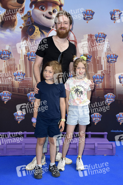 Tino Mewes mit den Kindern Nevi und Lia bei der Premiere des Kinofilms 'Paw Patrol - Der Kinofilm / PAW Patrol: The Movie' im Kino in der Kulturbrauerei. Berlin, 15.08.2021