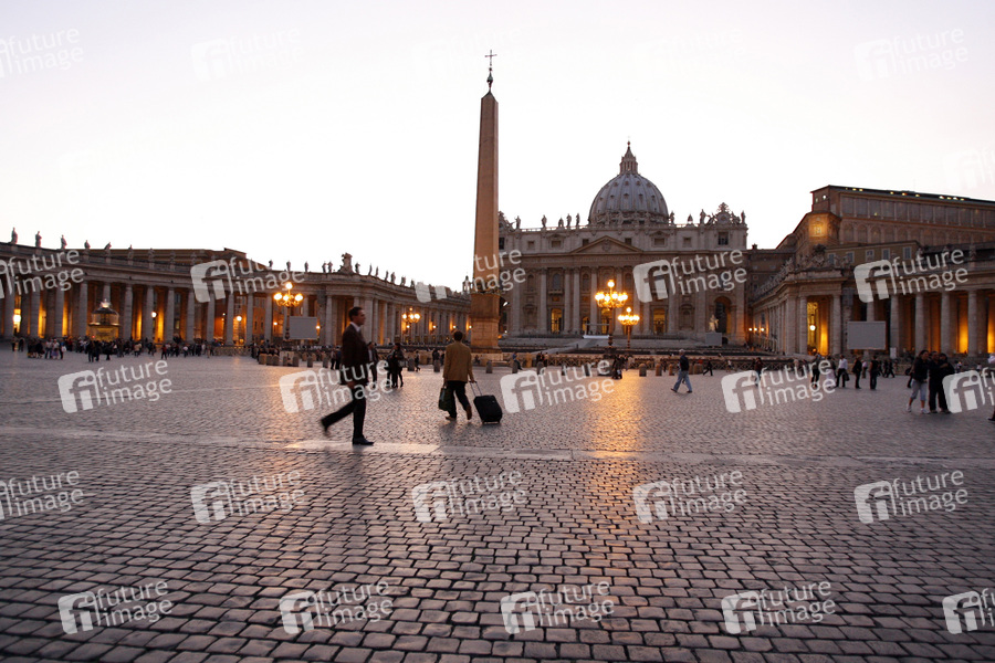wurde von Gian Lorenzo Bernini zwischen 1656 und 1667 unter Papst Alexander VII. (1655–1667) vor dem Petersdom in Rom angelegt, der Petersplatz ist Teil des Territoriums der Vatikanstadt, die Kolonnaden bilden die Grenze zwischen Vatikanstadt und Italien, ca. 35.300 m² groß, Peterskirche, Petersdom, Obelisk, Nachtaufnahme