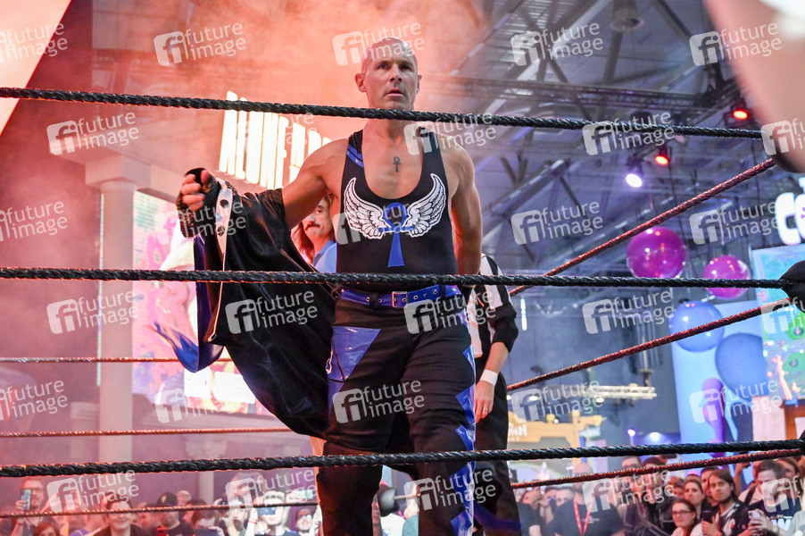 All Elite Wrestling auf der Gamescom 2022 auf dem Gelände der Kölnmesse. Die Gamescom ist die weltweit größte Messe für Computer- und Videospiele, gemessen nach Ausstellungsfläche und Besucheranzahl. Zahlreiche Hersteller aus aller Welt präsentieren hier ihre neue Soft- und Hardware. Köln, 25.08.2022