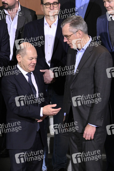 Olaf Scholz beim Treffen des Bundeskanzlers mit Vertretern der Stahlbranche sowie von Gewerkschaften und Betriebsräten im Bundeskanzleramt. Berlin, 09.12.2024