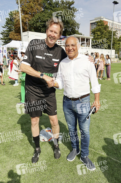 Lou Richter und Felix Magath beim Benefiz-Fußballspiel 'Kicken mit Herz' 2024 zu Gunsten des Herzzentrums des UKE im Stadion des SC Victoria. Hamburg, 08.09.2024