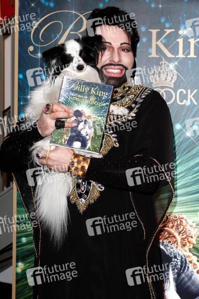 Hund Billy King und Harald Gloeoeckler bei der Buchvorstellung 'Billy King - mein Leben mit Harald Glööckler'. Berlin, 28.02.2013