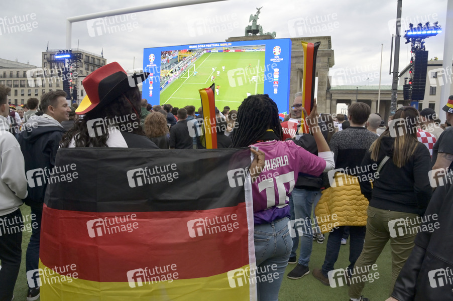 Fans auf der Fan Zone der UEFA EURO 2024 vor dem EM-Eröffnungsspiel Deutschland vs. Schottland am Brandenburger Tor. Berlin, 14.06.2024