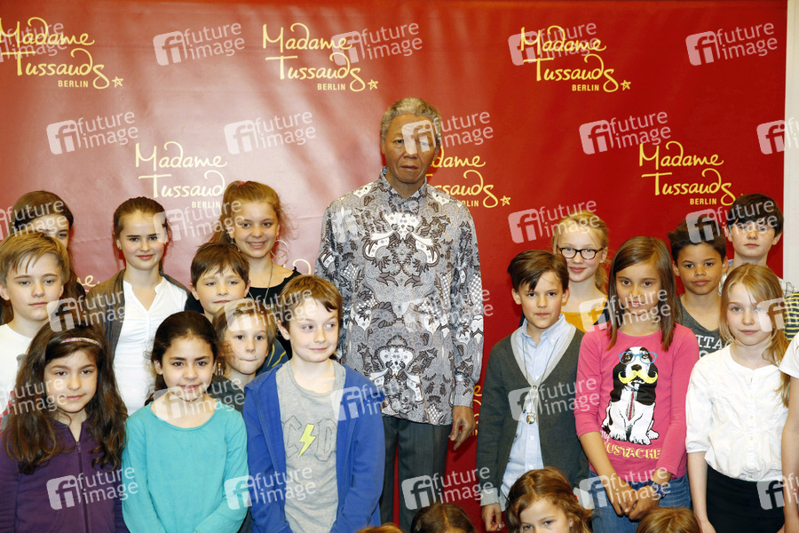 20 Jahre nach seiner Vereidigung als erster schwarzer Präsident Südafrikas präsentiert Madame Tussauds Berlin die Wachsfigur von Nelson Mandela. Die Enthüllung der Figur findet in der Nelson Mandela Schule statt. Berlin, 08.05.2014
