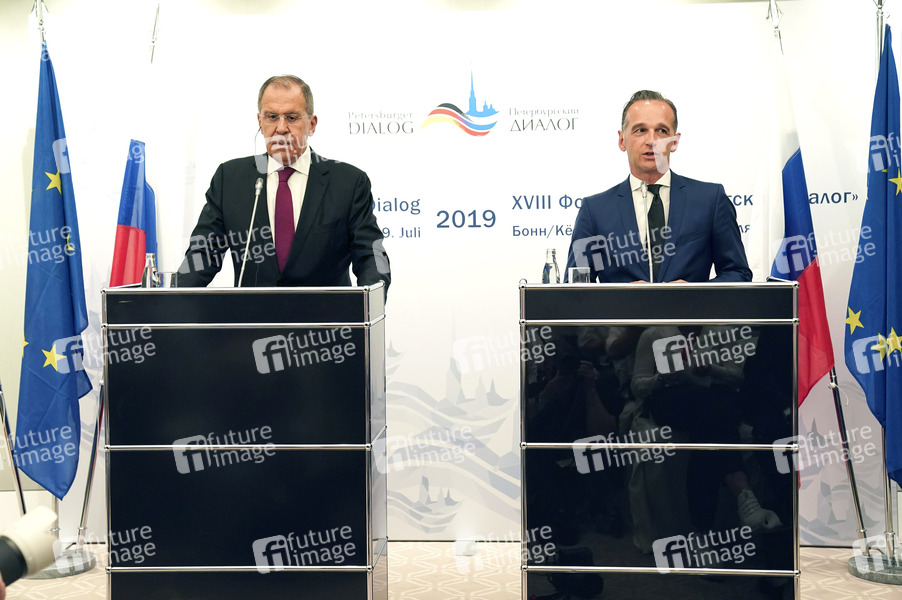 Sergei Wiktorowitsch Lawrow / Sergey Lavrov und Heiko Maas bei einer Pressekonferenz zur Eröffnung vom 18. Petersburger Dialog 2019 im Steigenberger Hotel. Königswinter, 18.07.2019