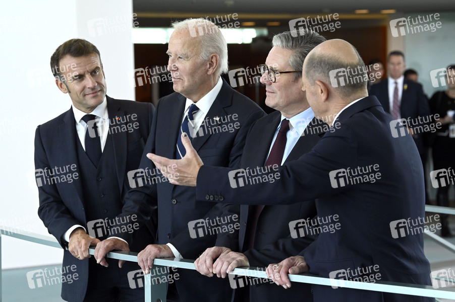 Emmanuel Macron, Joe Biden, Keir Starmer und Olaf Scholz beim QUAD Treffen im Bundeskanzleramt. Berlin, 18.10.2024