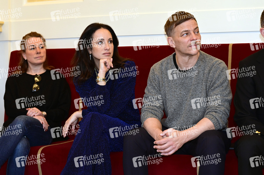 Stephanie Stumph und Tom Wlaschiha bei der Pressekonferenz zum SemperOpernball 2025 in der Semperoper. Dresden,06.02.2025