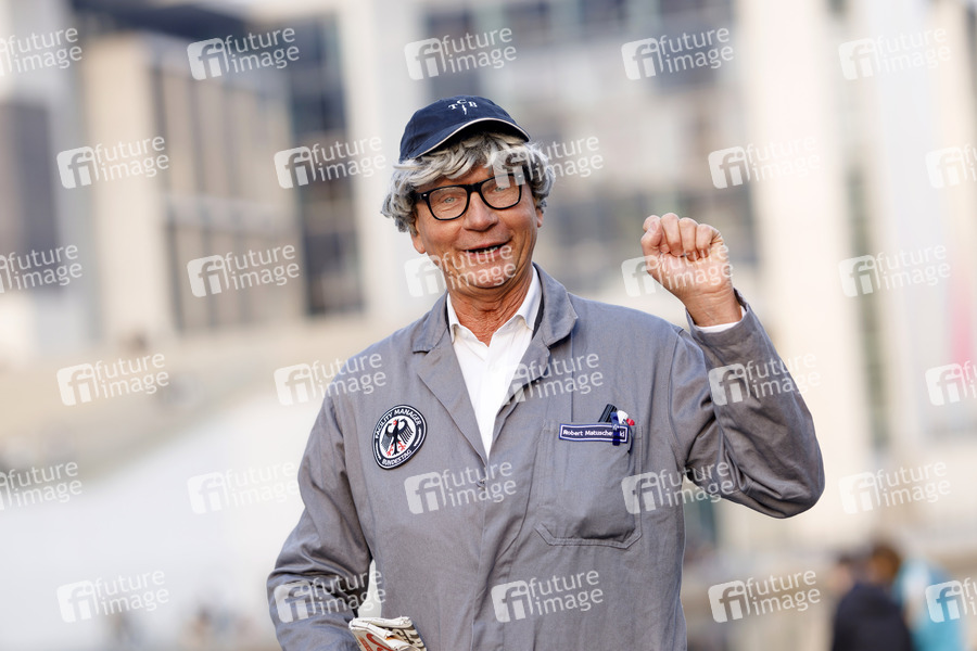 Claudius Fabig in seiner Rolle als Hausmeister Robert Götz Matuschewski ('Facility Manager des Bundestags') bei Dreharbeiten nach der 219. Sitzung des Deutschen Bundestages vor dem Reichstagsgebäude. Berlin, 26.03.2021