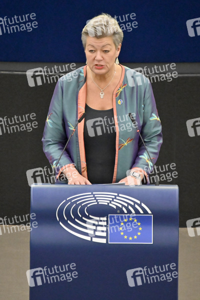 Krieg, Russland, Ukraine, Flucht, Hilfe. Flücthlinge, Europäisches Parlament, Plenum, Plenartagung, Plenardebatte, Plenarsitzung, Debatte, Rede, Politik, Strasbourg, Strassburg, Europaparlament, Europa-Politik, EU-Abgeordnete, EU-Parlament, EP, Parlament der Europäischen Union, European Parliament, European Union, Parlamentum Europaeum, MdEP, Mitglied des Europäischen Parlaments, Politikerin, Schweden, Sveriges socialdemokratiska arbetareparti, Kommissarin für Inneres der Europäischen Union