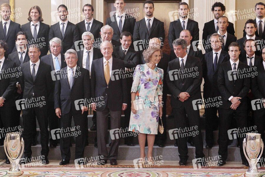 König Juan Carlos und Königin Sophia empfangen Spieler und Funktionäre von Atletio Madrid im Palacio de la Zarzuela, Madrid