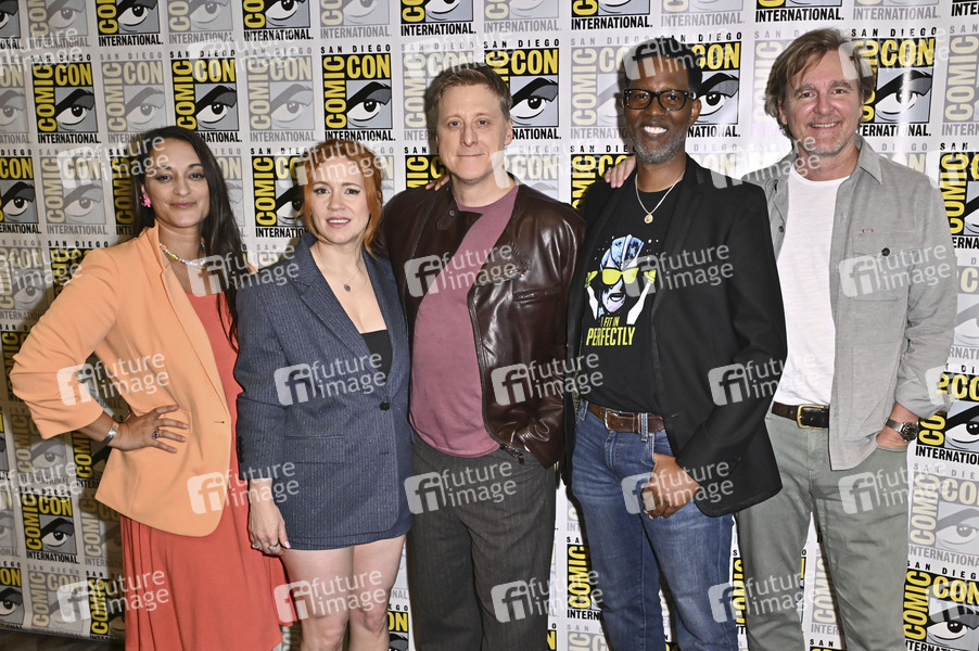 Sara Tomko, Alice Wetterlund, Alan Tudyk, Corey Reynolds und Chris Sheridan beim Photocall zur 4. Staffel der SyFy Serie 'Resident Alien' auf der San Diego Comic-Con International 2025 im Hilton Bayfront Hotel. San Diego, 25.07.2025