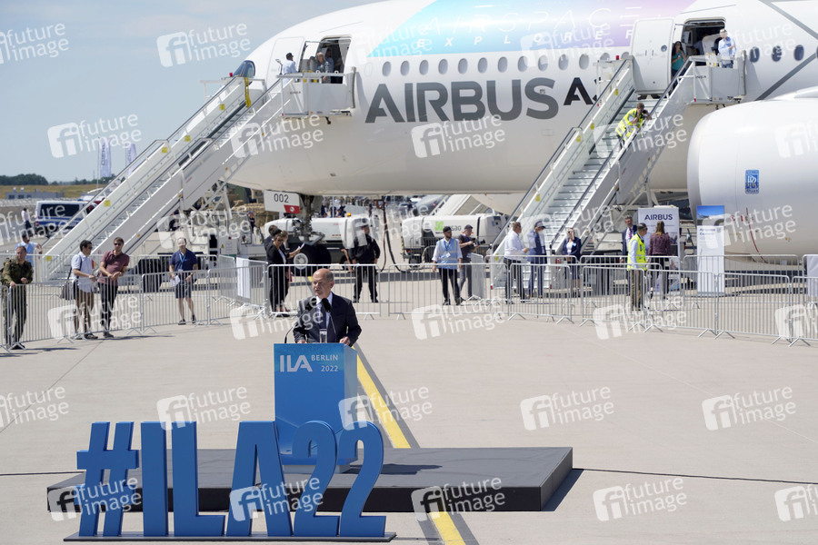 Olaf Scholz bei der ILA-Eröffnung mit anschließendem Rundgang auf dem ILA-Gelände am Flughafen BER Berlin-Brandenburg. Berlin, 22.06.2022
