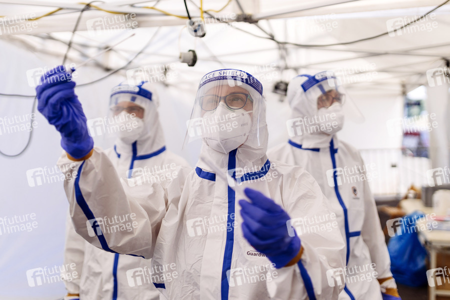 Wegen der Corona-Krise bzw. Corona-Pandemie werden im Corona-Testzentrum am Köln Bonn Airport Reiserückkehrer aus Risikogebieten auf Corona getestet. Köln, 11.08.2020