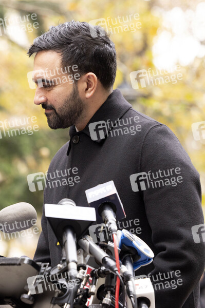 Zohran Mamdani bei einer Pressekonferenz im City Hall Park zu einem bevorstehenden Treffen mit dem US-Präsidenten in Weißen Haus. New York, 20.11.2025