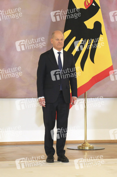 Olaf Scholz bei der Entlassung der Bundesregierung des 20. Deutschen Bundestages durch den Bundespräsidenten im Schloss Bellevue. Berlin, 25.03.2025