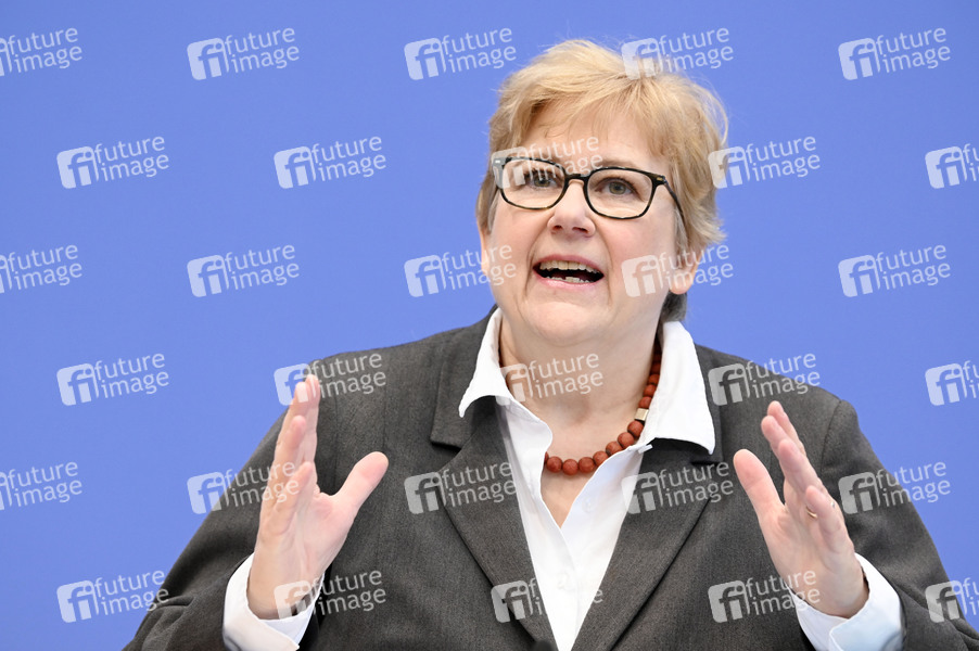 Beate Rudolf bei der Bundespressekonferenz zur Vorstellung des 'Monitor Menschenhandel in Deutschland - Erster Periodischer Bericht' im Haus der Bundespressekonferenz. Berlin, 17.10.2024