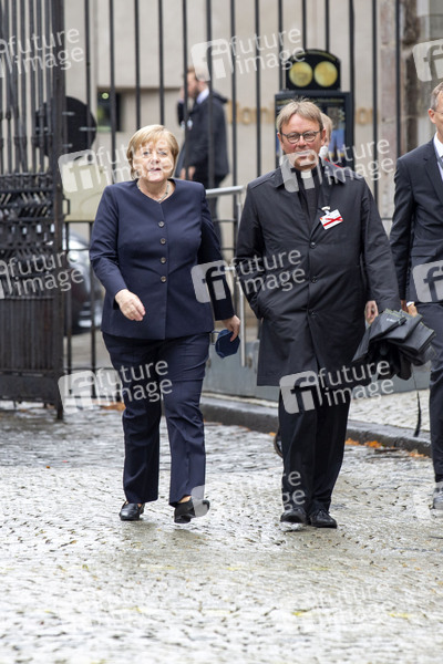 Angela Merkel und Karl Jüsten beim ökumenischen Gottesdienst für die Opfer der Flutkatastrophe im Hohen Dom zu Aachen. Aachen, 28.08.2021