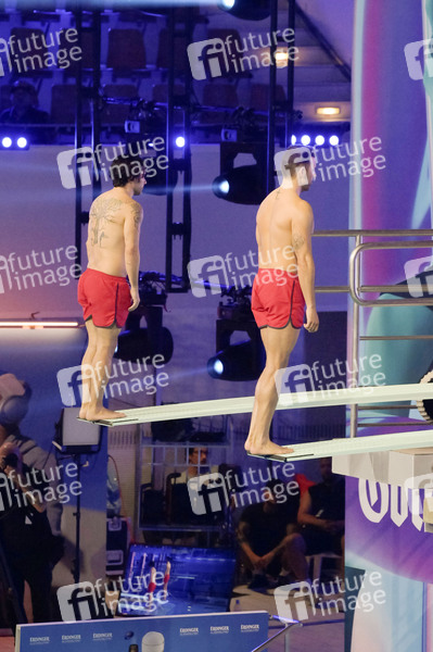 Marc Terenzi und Jay Khan in der Fernsehshow 'RTL Turmspringen' aus der Schwimm- und Sprunghalle im Europasportpark Berlin. Berlin, 03.06.2022