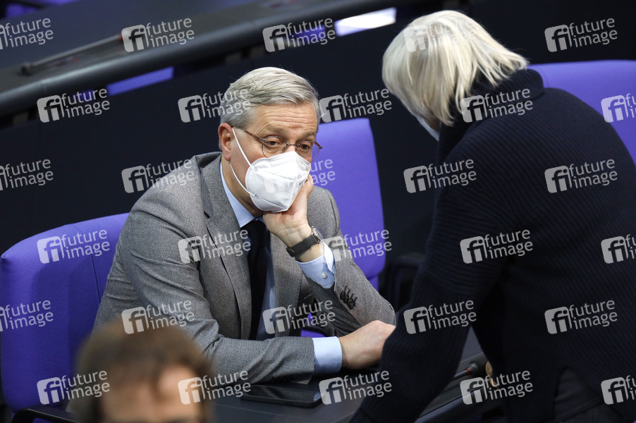 Norbert Röttgen und Claudia Roth in der 208. Sitzung des Deutschen Bundestages im Reichstagsgebäude. Berlin, 10.02.2021
