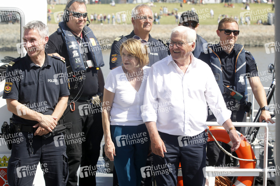 Frank-Walter Steinmeier mit Ehefrau Elke Büdenbender bei der Eröffnung der Sail Bremerhaven 2025 mit Begrüßungszeremoniell und Segeltörn auf der 'Gorch Fock', Besichtigung des Seenotrettungskreuzers 'Hermann Rudolf Meyer' und Empfang auf der Fregatte 'Bayern'. Bremerhaven, 13.08.2025