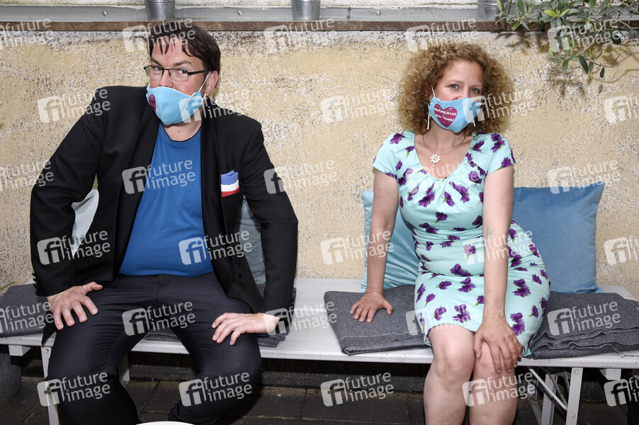 Andre Hartmann und Christiane Brammer bei der Aktion 'Theater lebt' vor dem Hofspielhaus. München, 19.05.2020