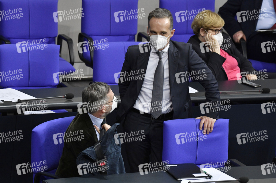 Michael Roth und Heiko Maas in der 215. Sitzung des Deutschen Bundestages im Reichstagsgebäude. Berlin, 04.03.2021