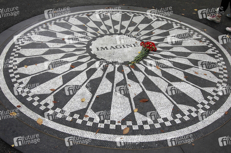 kleiner Bereich im Central Park, gestaltet von Yoko Ono, gewidmet John Lennon, Einweihung 9. Oktober 1985, Mosaik aus schwarzen und weißen Steinchen