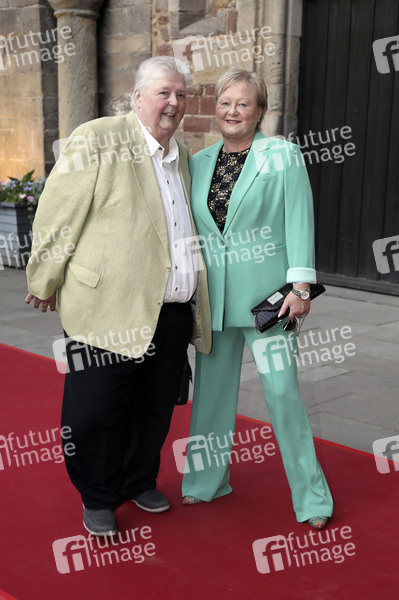 Wolfgang Schwalm von den Wildecker Herzbuben mit Freundin Diana Kühn bei der Eröffnung der 74. Bad Hersfelder Festspiele 2025 mit dem Theaterstück 'Sommernachtsträume' in der Stiftsruine. Bad Hersfeld, 20.06.2025