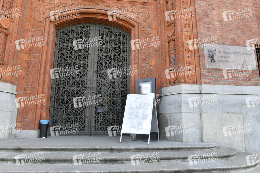 Bekanntmachung am Roten Rathaus. Nach zuletzt beschlossenen Schutzmaßnahmen gegen die Ausbreitung des Corona-Virus kommt das öffentliche Leben in Berlin nahezu zum Erliegen. Betroffen sind fast alle Sehenswürdigkeiten, Museen, Plätze, Strassen, Restaurants, Biergärten, Universitäten u.v.m. Berlin, 17.03.2020