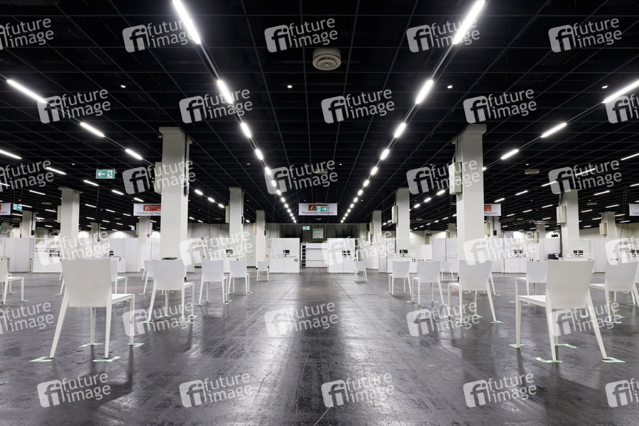 Das Kölner Impfzentrum in den Hallen der Koelnmesse soll am Montag, den 8 Februar 2021 eröffnen. Zuerst werden dort nun die Über-80-Jährigen geimpft – vorausgesetzt sie haben einen der Impftermine bekommen. Aufgrund der Verzögerung bei den Impfstoff-Lieferungen der Hersteller Biontech und Pfizer musste der Impfstart in NRW verschoben werden. Köln, 05.02.2021