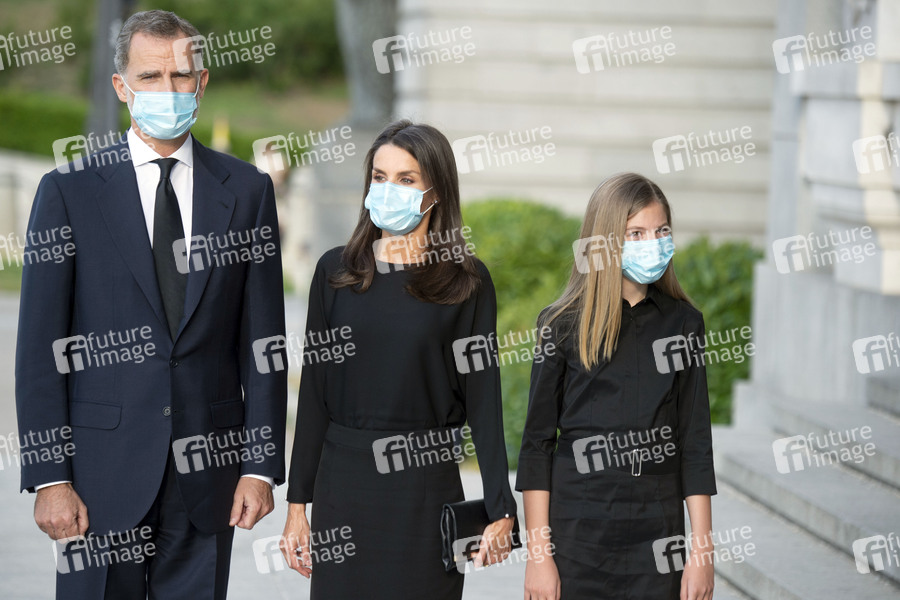 König Felipe VI. von Spanien, Königin Letizia von Spanien und Prinzessin Sofia von Spanien bei einer Gedenkmesse für die Opfer des Coronavirus COVI-19 in der Almudena-Kathedrale. Madrid, 06.07.2020