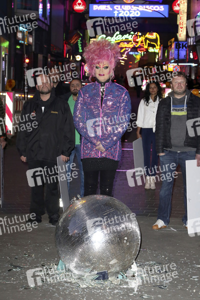 Olivia Jones bei der Mahnwache und Kranzniederlegung zum Erhalt der Kiez-Kultur in der Großen Freiheit auf der Reeperbahn. Hamburg, 07.05.2020