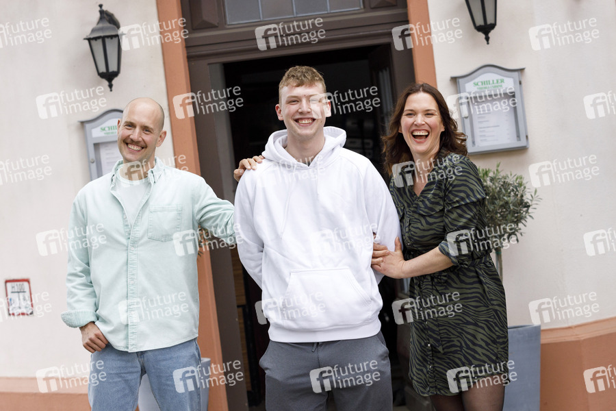 Oliver Petszokat, Ilias Petszokat und Tatiani Katrantzi beim Fototermin am Set der RTL TV-Serie 'Unter uns' in den MMC-Studios in Ossendorf. Köln, 19.05.2021