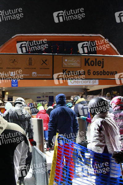 Großer Menschenandrang bis zum Abend auf den Skipisten im niederschlesischen Karpacz (Krummhübel), einen Tag vor dem harten Lockdown in Polen (28.12.2020-17.01.2021). Karpacz, 27.12.2020