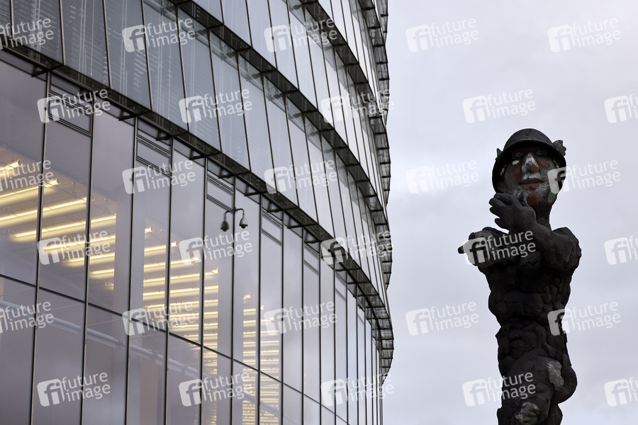 Konzernzentrale der Deutsche Post AG mit der zehn Meter hohen und fünf Tonnen schweren Skulptur 'Mercurius' von Markus Lüpertz. (Themenbild, Symbolbild) Bonn, 10.02.2022