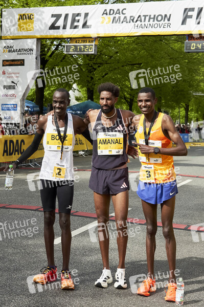 Boaz Kipkemei, Amanal Petros und Victor Kiplimo beim 32. ADAC Marathon. Hannover, 14.04.2024